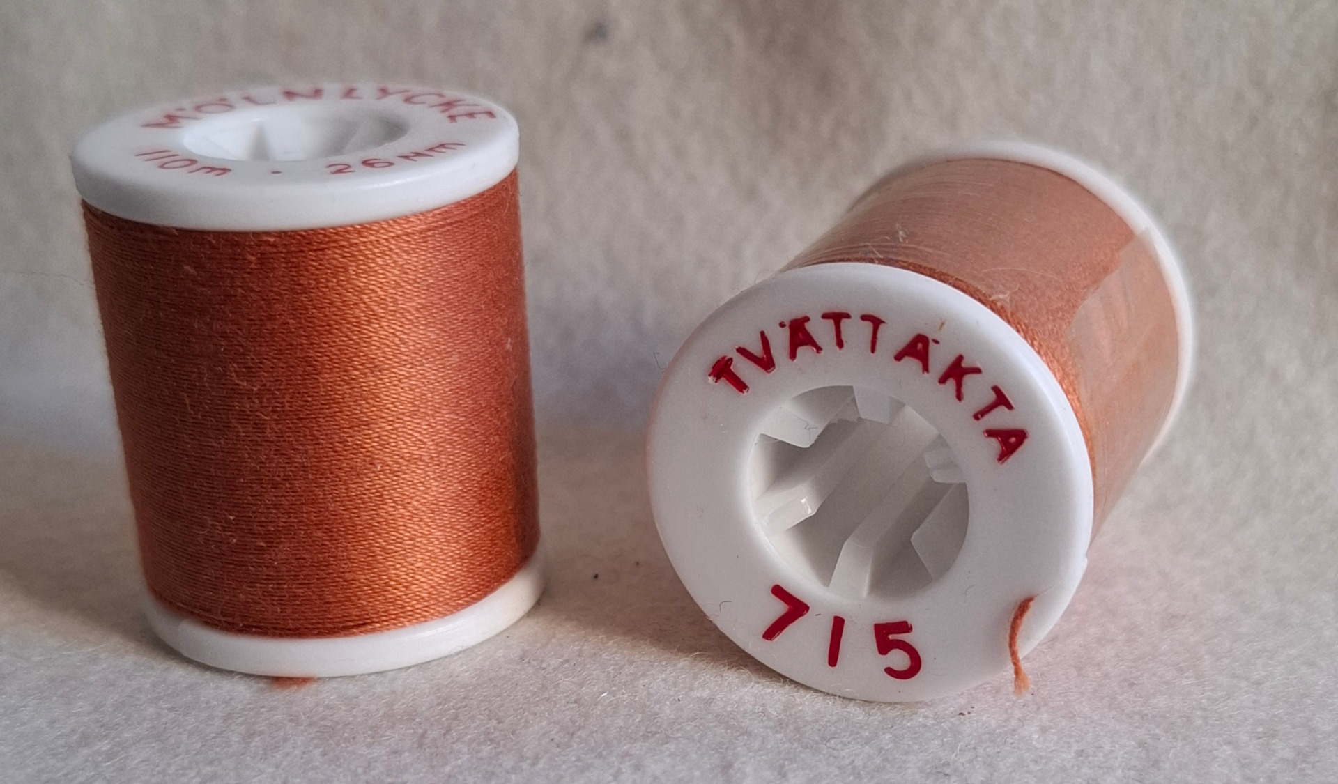 Mölnlycke bomullstråd rulle på 110 m. Brun nr 715.